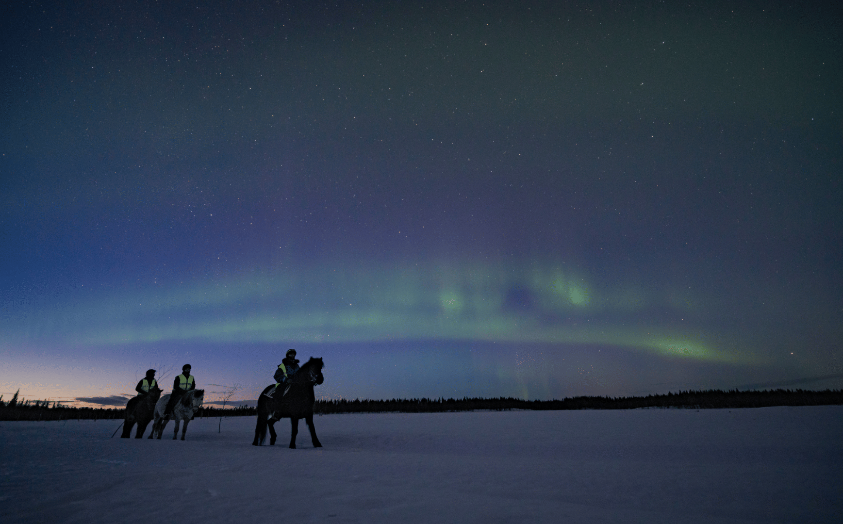 During the trek, we'll ride through varying landscapes like forests or fields and all of this while surrounded by the rising shadows of the beautiful fells around us. If the weather is in our favor, we'll have a chance to ride underneath the sparkling night sky and maybe even experience the Northern Lights!