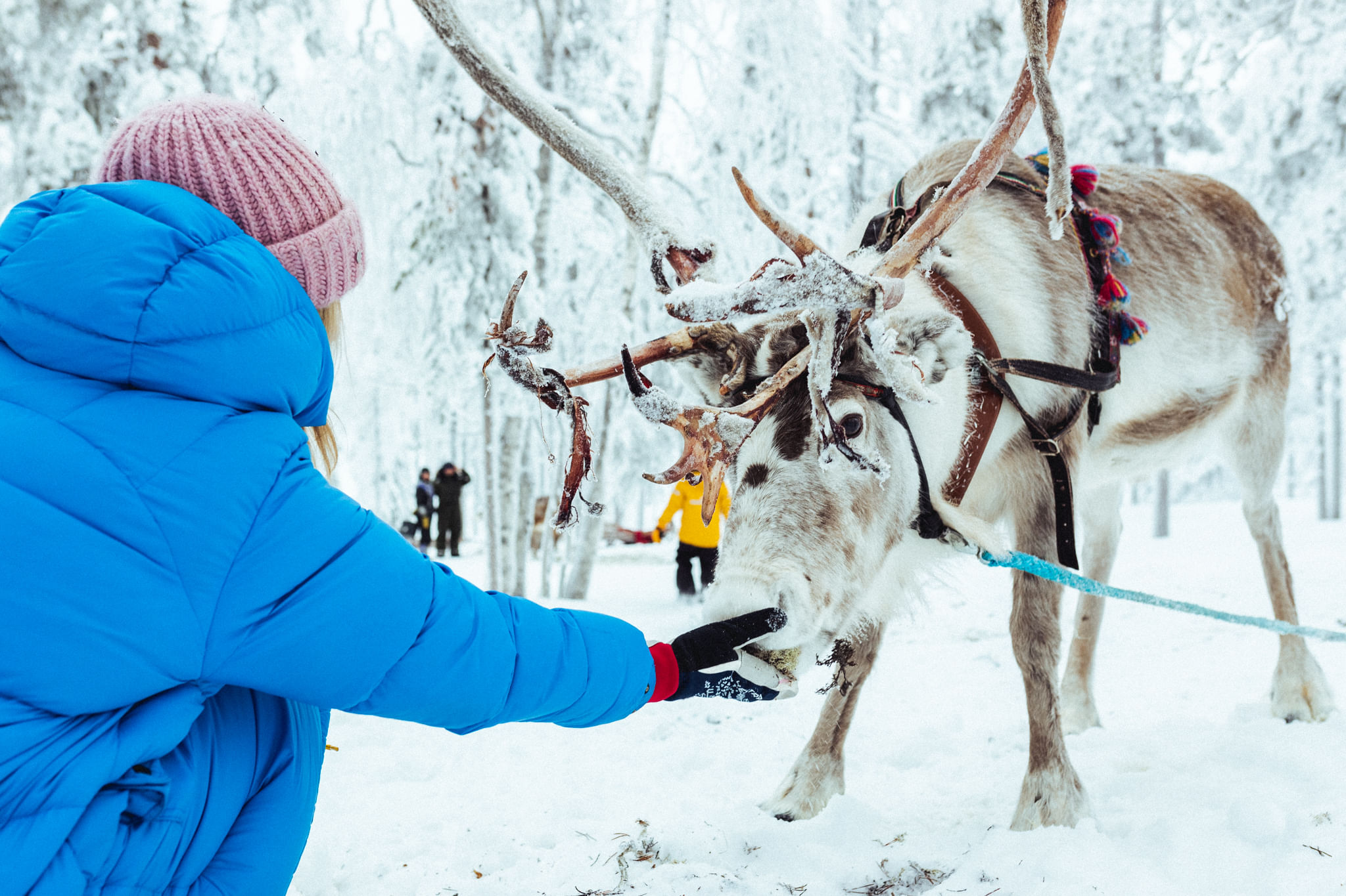 We go snowmobiling to a local reindeer farm, where we can meet and feed the reindeer inside the fence. Our guide will tell us about these semi-wild animals and reindeer herding. Here you can get the best close-ups of yourself with the reindeer. We will also enjoy a hot drink with a fresh bun in the warmth of the café, after which we will drive back to Levi, richer in many lessons and memories.