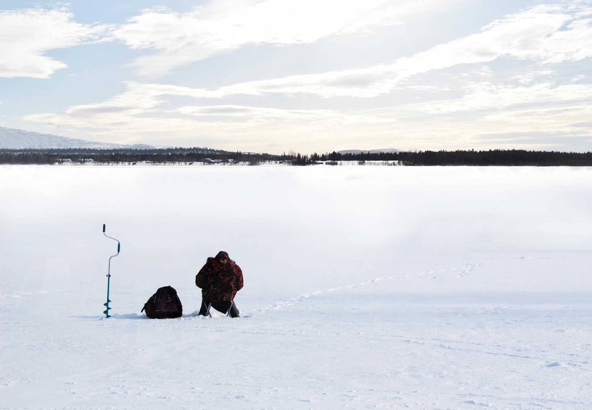 In winter, a thick layer of ice separates us from the fish in the lakes, but by drilling a hole in the ice, we can cast a lure underwater and start fooling the fish. We drive from Levi through snow-covered forests to the lake, where we test our fishing skills. If you are lucky, you can have a dinner of home-caught fish. While fishing, we'll have some coffee or hot juice.
