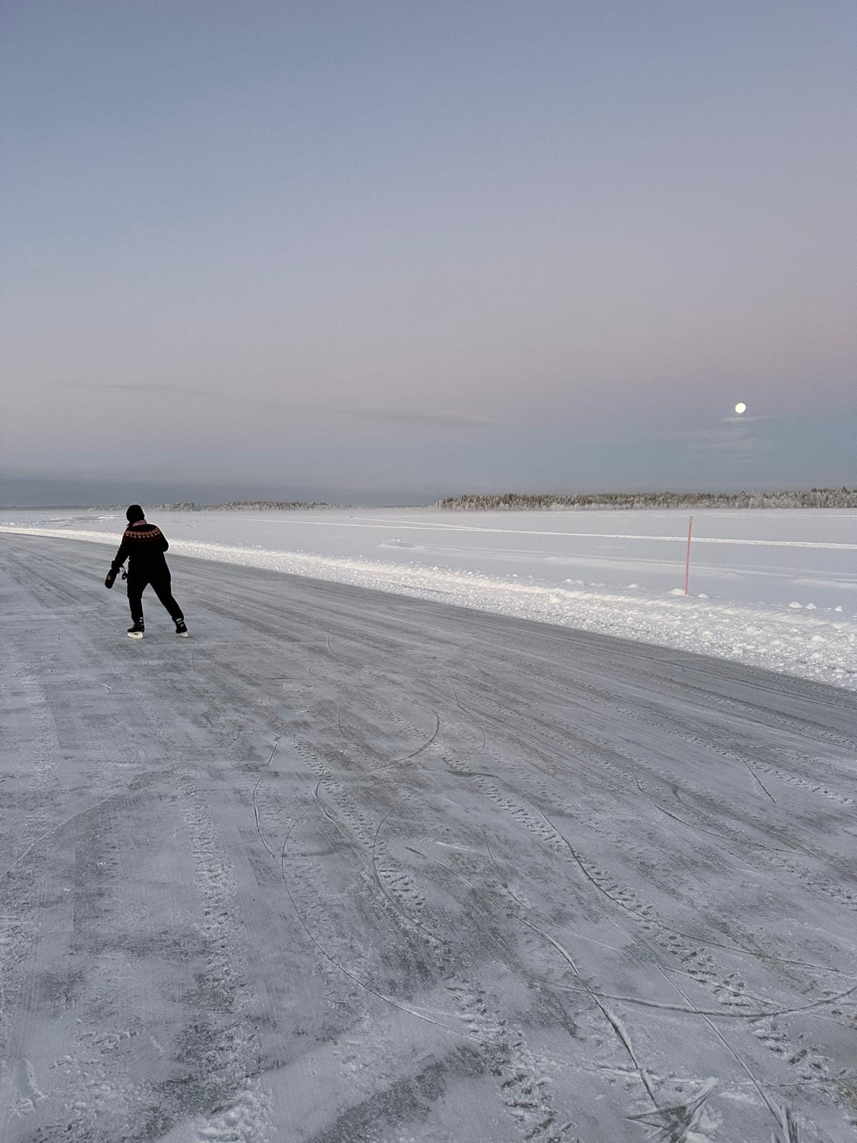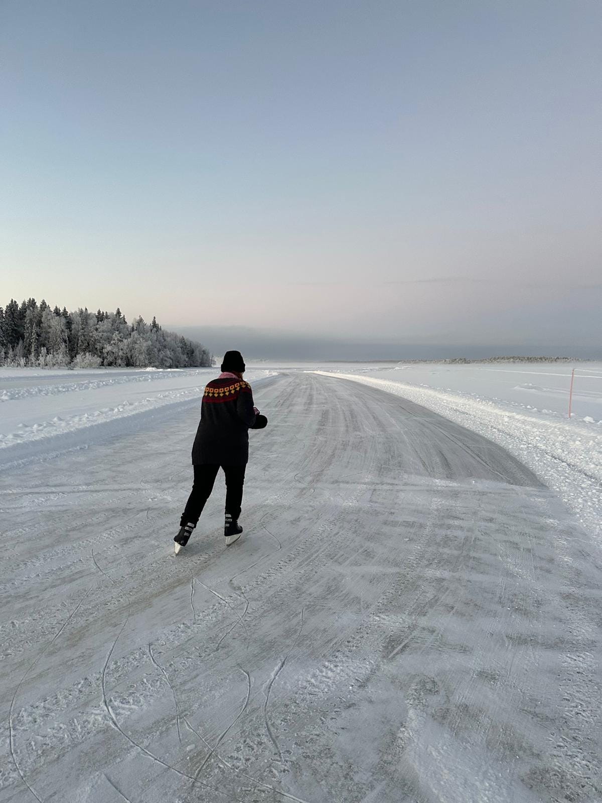 Begin your Lapland skating adventure in our cozy yard, where you’ll have the chance to meet our reindeer and capture unforgettable photos before heading onto the ice. Your local guide will help you choose the right skates, ensure a comfortable fit, and provide a clear safety briefing so you can feel confident on natural ice.