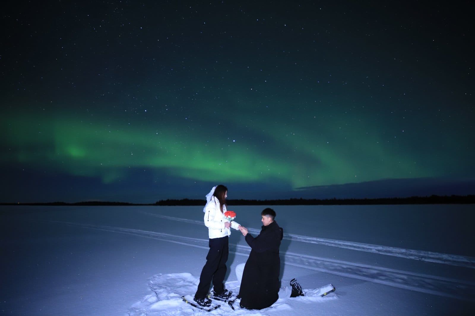 Give yourself and your loved ones unforgettable memories — Northern Lights watching on the lake with a telescope in Lapland!