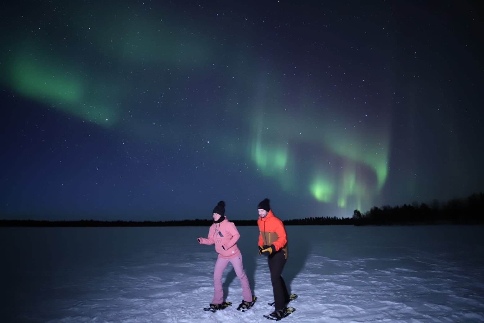 If you wish, we’ll provide snowshoes, so you can take a gentle walk across the lake’s untouched surface. With every step, you’ll feel the stillness of nature, the crunch of snow beneath you, and the endless Arctic sky above