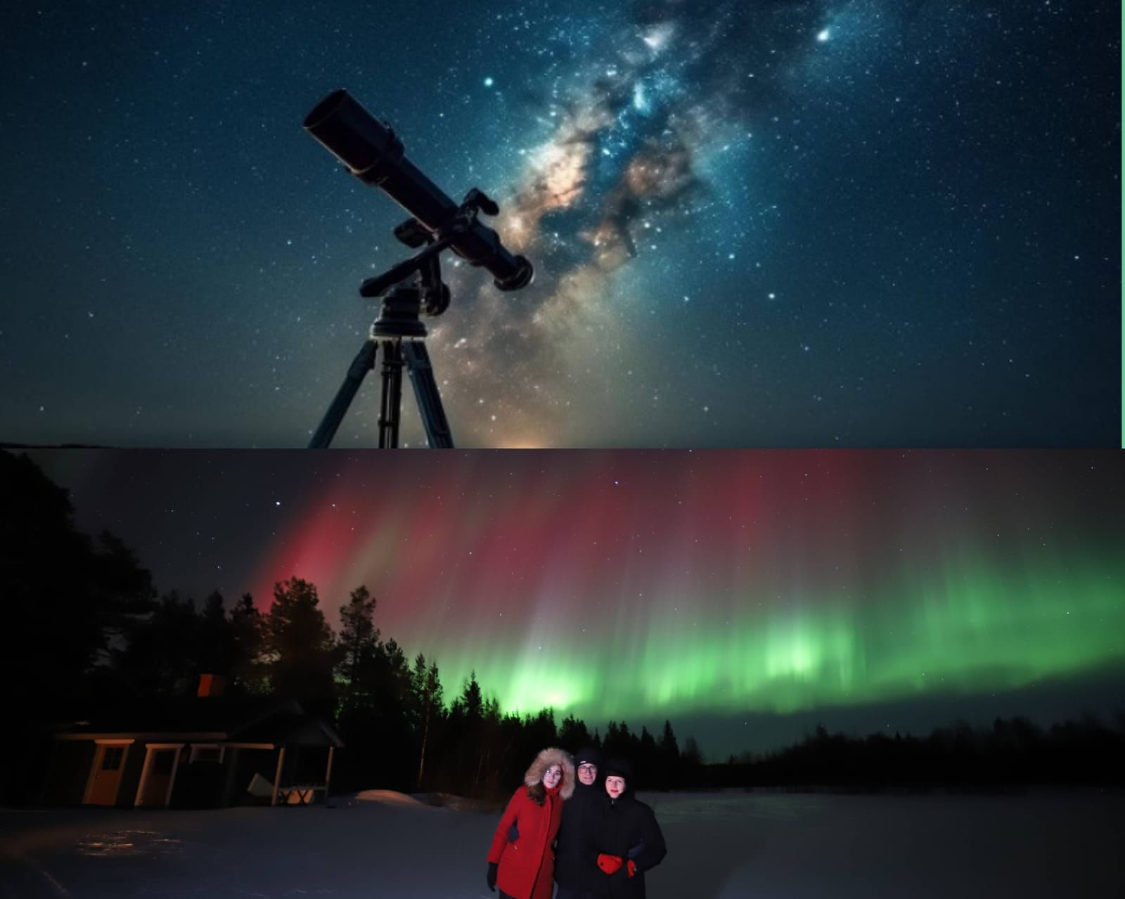 Join us for a magical Northern Lights experience in Lapland, where you’ll witness nature’s most stunning light show — the Aurora Borealis. This unforgettable night tour combines the thrill of Northern Lights viewing with a unique telescope stargazing experience, all guided by experts who share their knowledge of the Arctic sky.