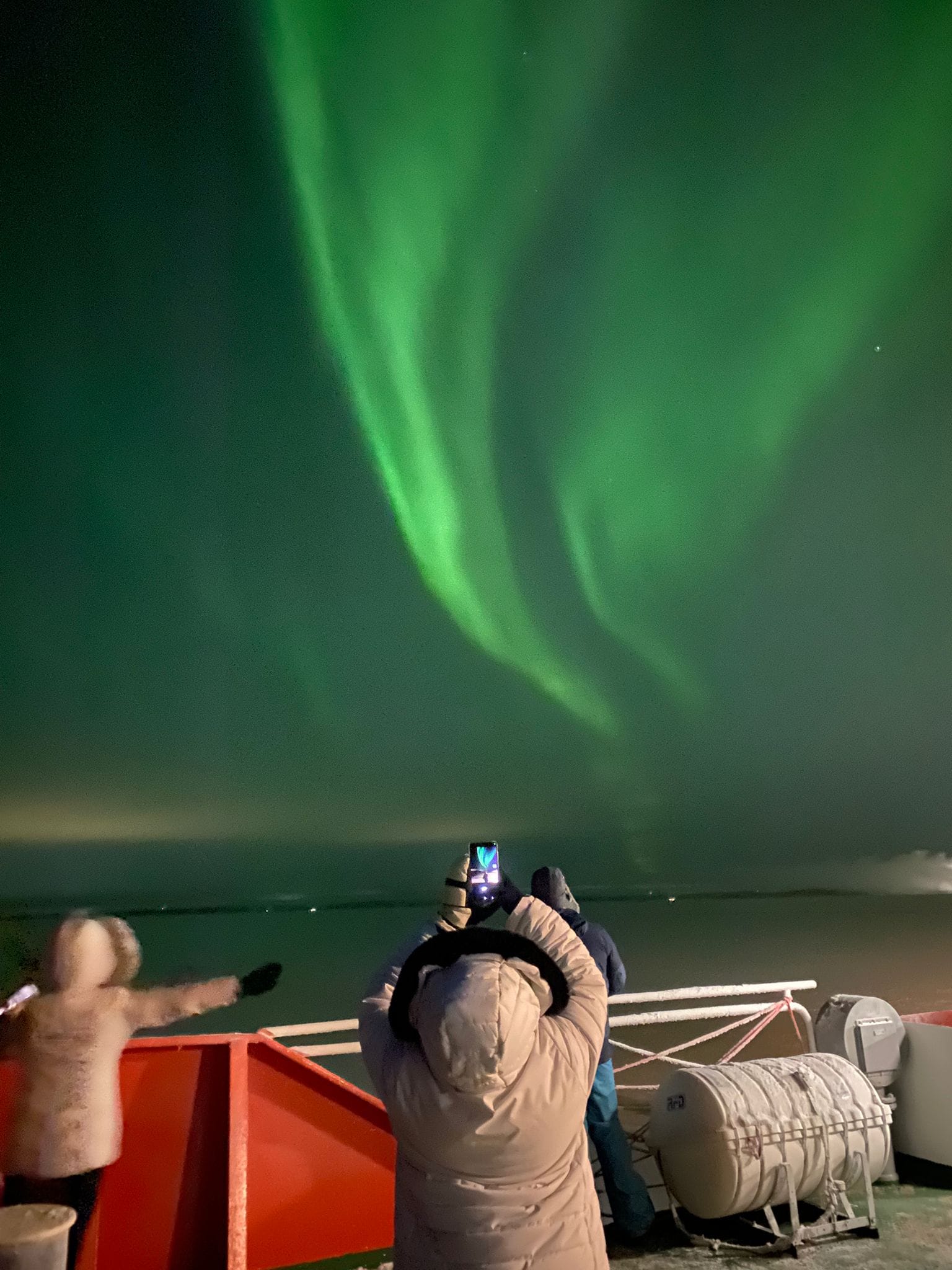 illuminating the arctic sky above you. While not guaranteed, the chance to see the northern lights from the deck of an icebreaker is simply magical.