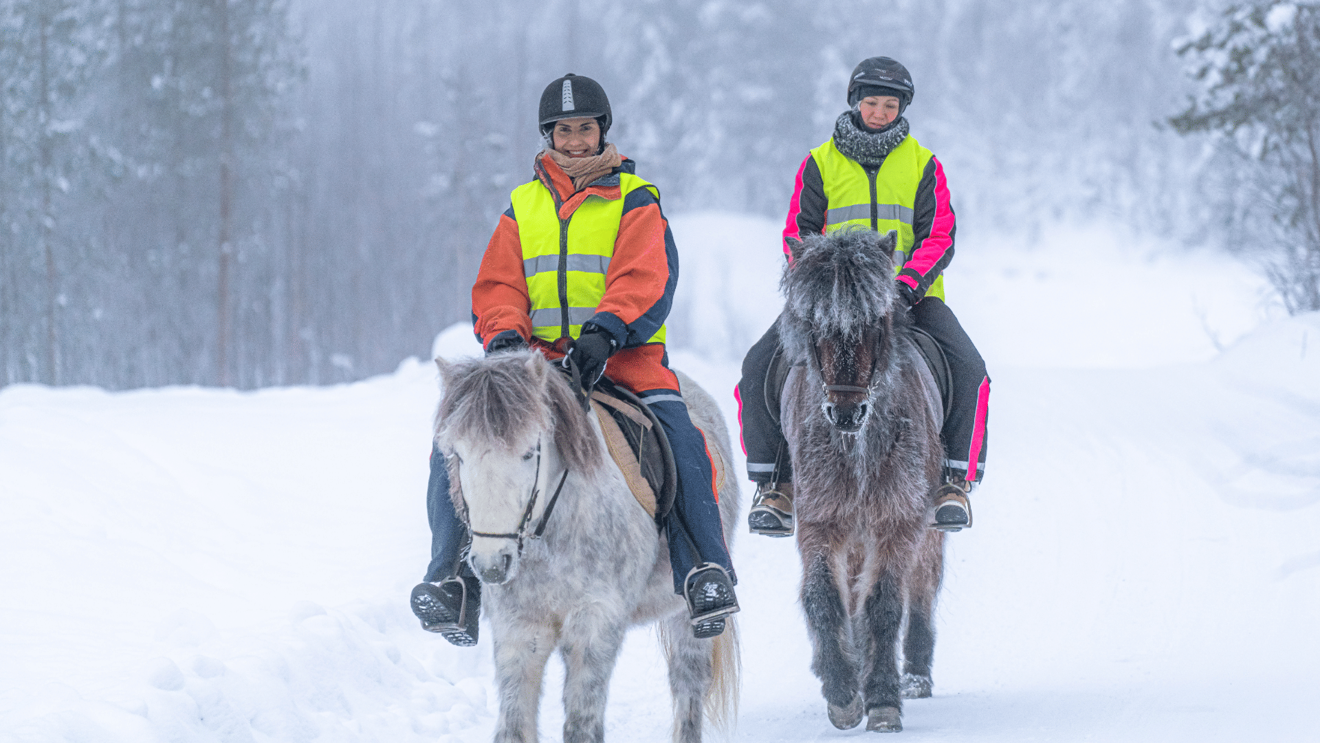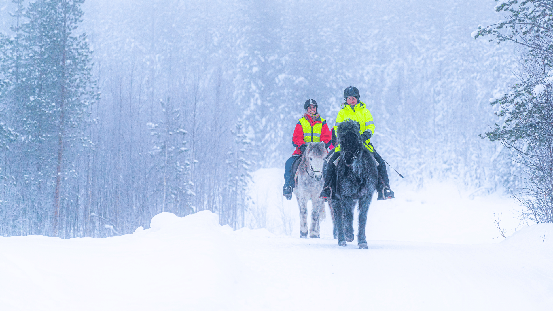 Come and experience horse riding in the magical Winter Wonderland with our lovable Icelandic horses! Enjoy the Lappish nature from horseback with the beautiful scenery of the fells and forests that surround us during our trek! Explore the forests, plains and roads together with your horse and try out the gentle tölt, a gait unique to the Icelandic horse breed!