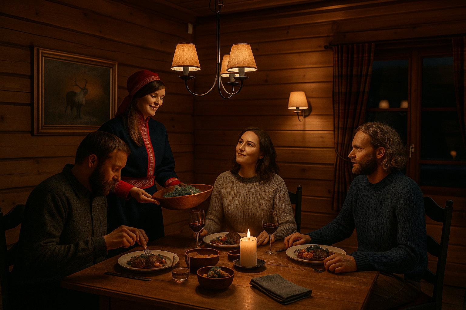 Following the ceremony, guests are offered a small but authentic taste of Lapland: freshly baked berry pie and coffee or tea, accompanied by a wild herb drink. The shaman is present throughout, sharing stories and answering questions, making this an intimate and personal cultural encounter.