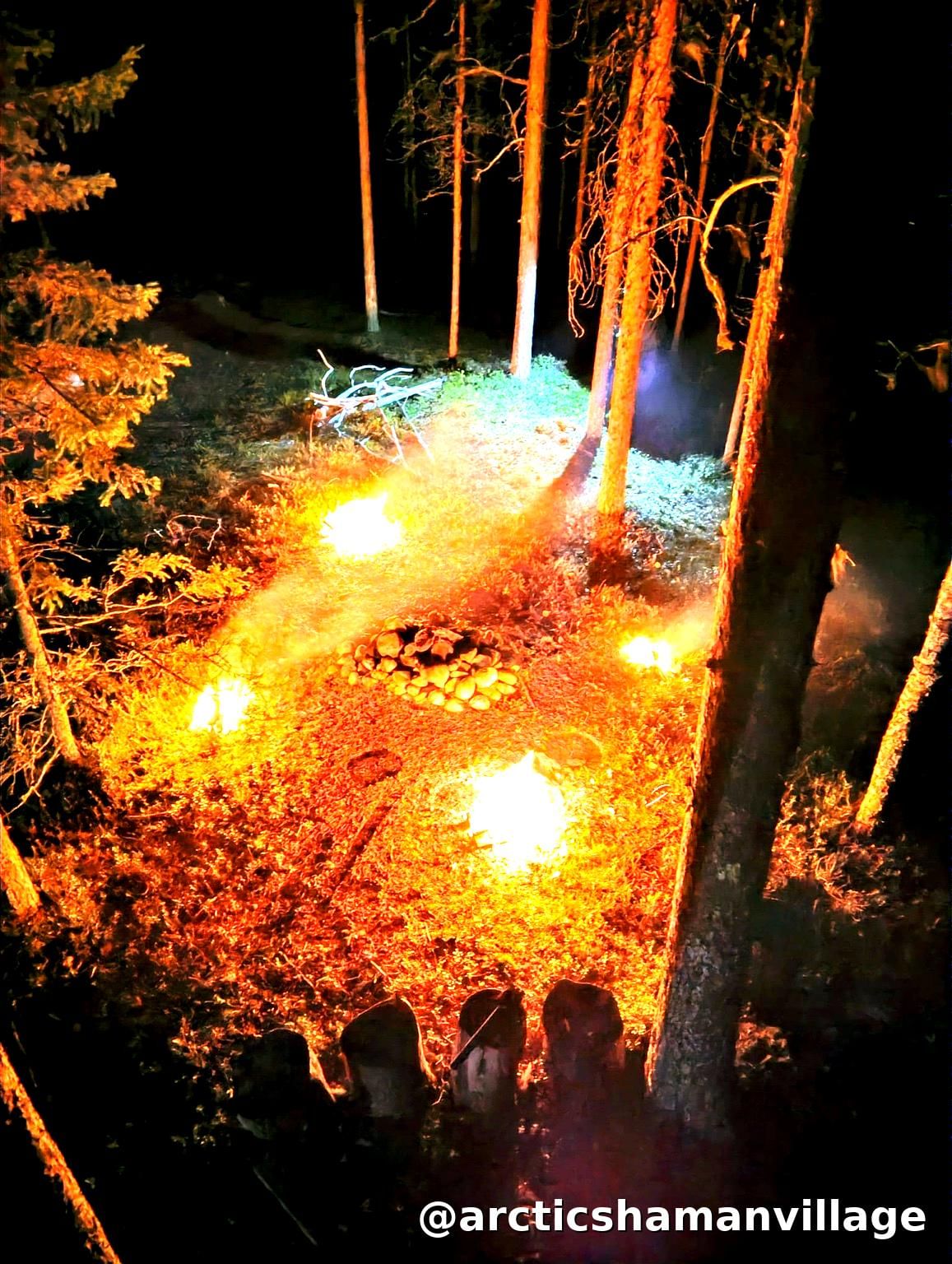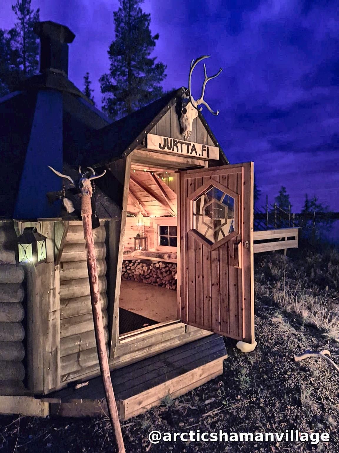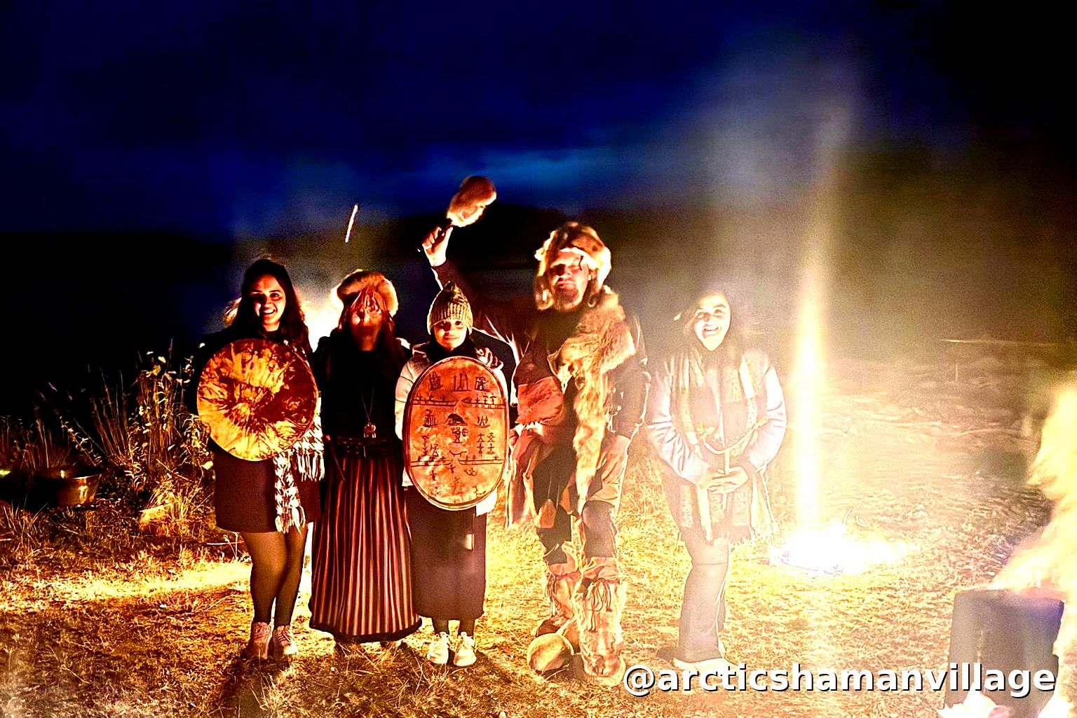 Step into a world of arctic magic in the heart of Lapland. Your journey begins with a pickup from Levi, followed by a warm welcome by the fire at Arctic Shaman Village. Enjoy a relaxing sauna and optional ice dip, then savor a 3-course wild food dinner crafted from local ingredients. After the meal, our shaman will guide you through a traditional drumming ceremony and offer a personal blessing – a powerful moment of connection and renewal.