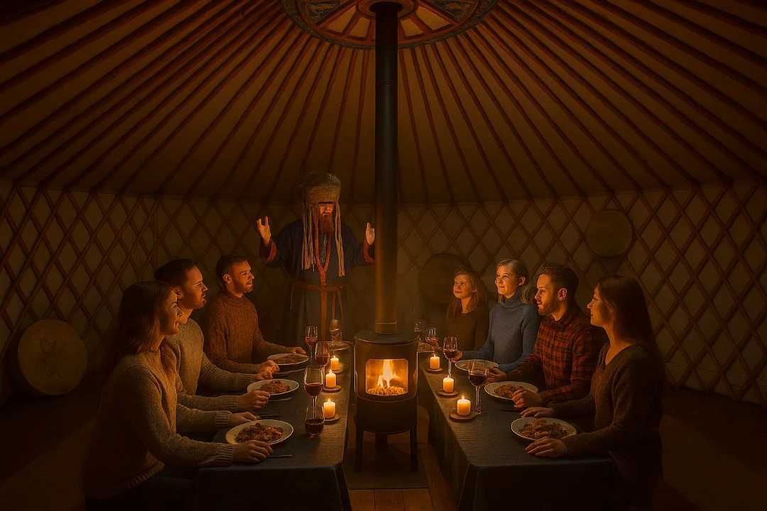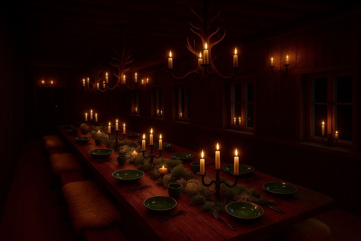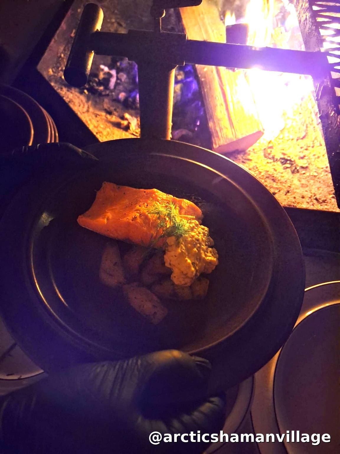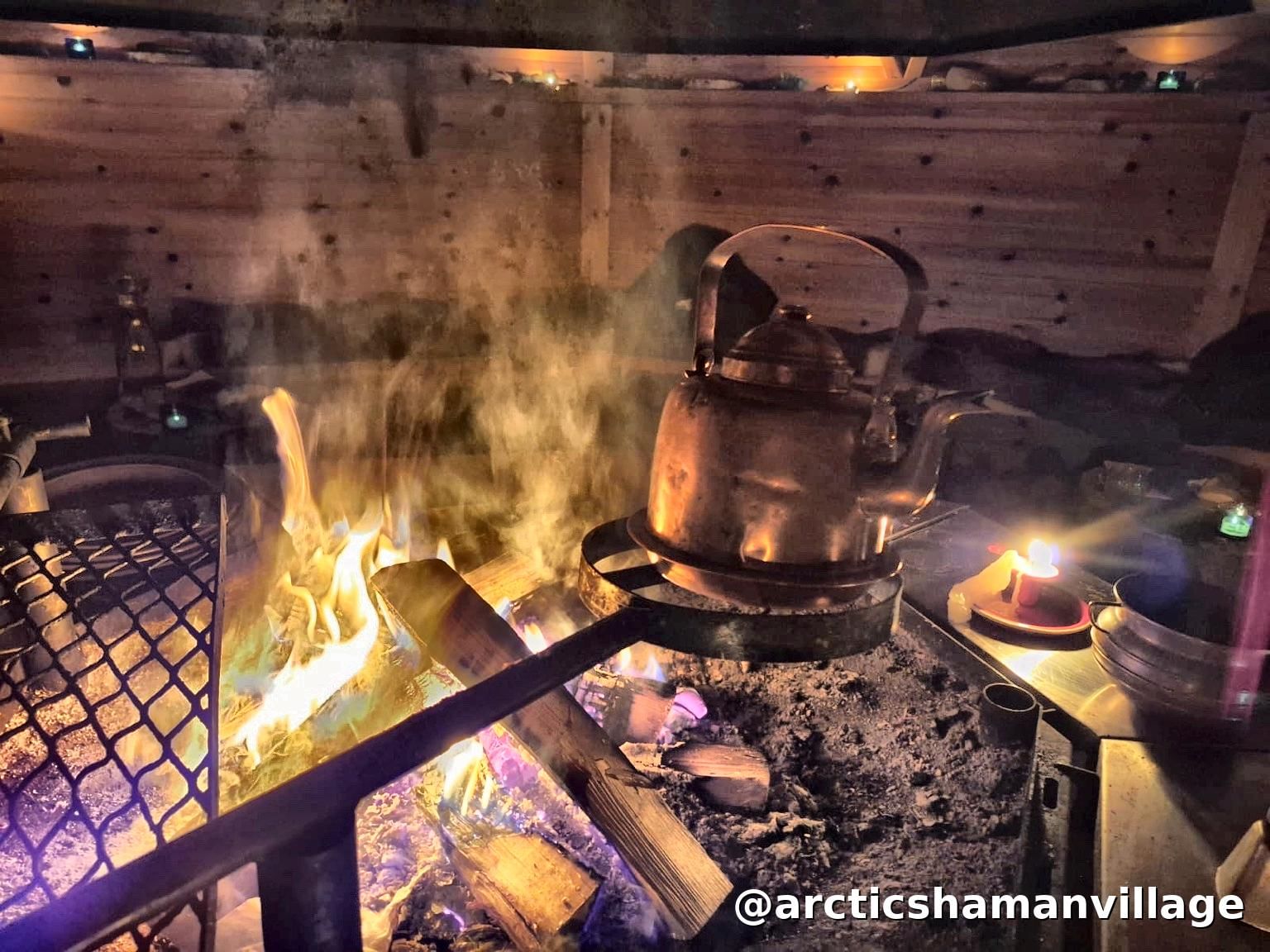 Step into a world of arctic magic in the heart of Lapland. Your journey begins with a pickup from Levi, followed by a warm welcome by the fire at Arctic Shaman Village. Enjoy a relaxing sauna and optional ice dip, then savor a 3-course wild food dinner crafted from local ingredients. After the meal, our shaman will guide you through a traditional drumming ceremony and offer a personal blessing – a powerful moment of connection and renewal.