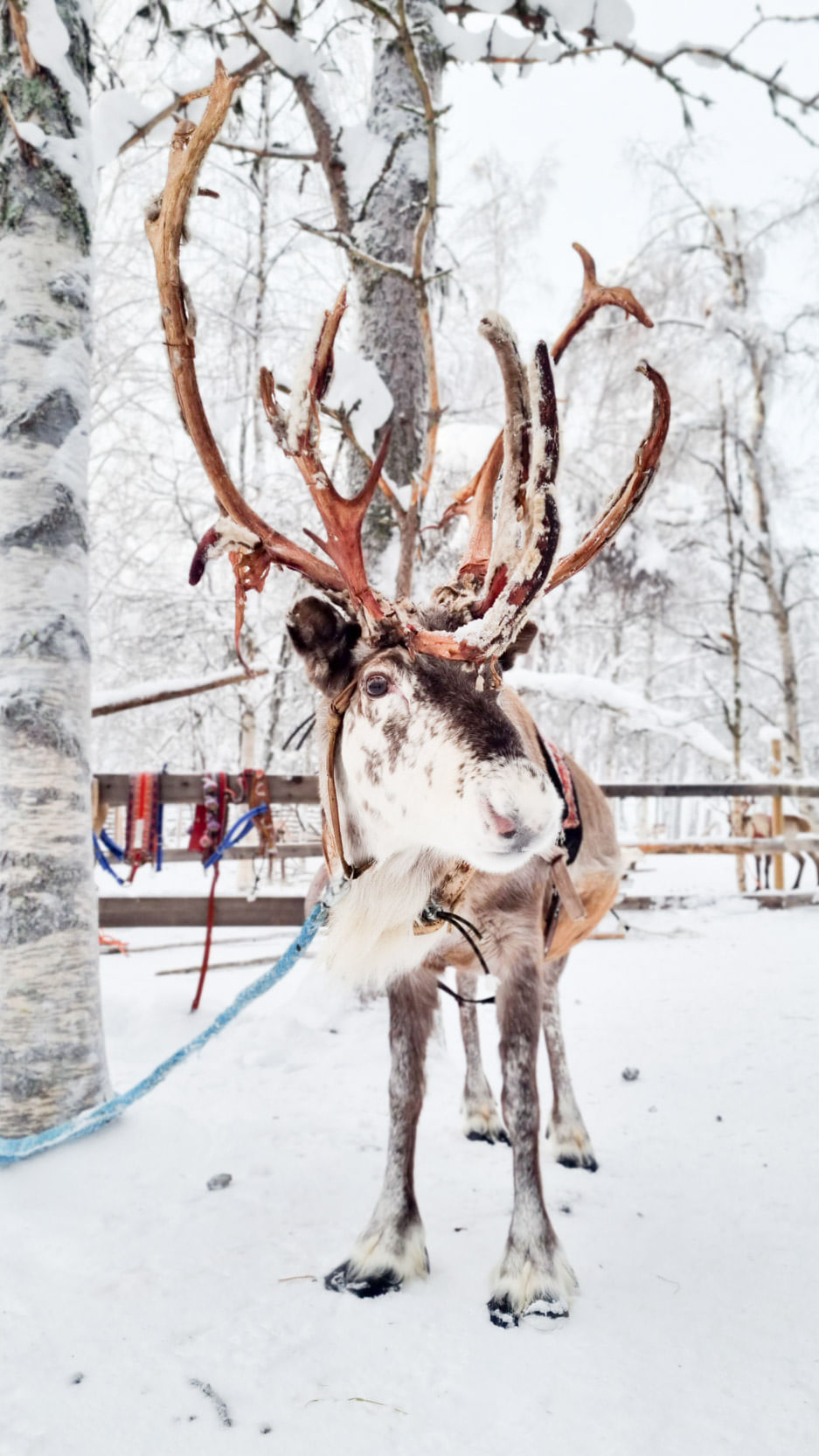 Experience the magic of winter with a peaceful 1 km reindeer sleigh ride at our traditional reindeer farm. Let a calm and friendly reindeer pull you through a snowy forest while you relax in a warm, fur-lined sleigh and take in the serene beauty of the surroundings.