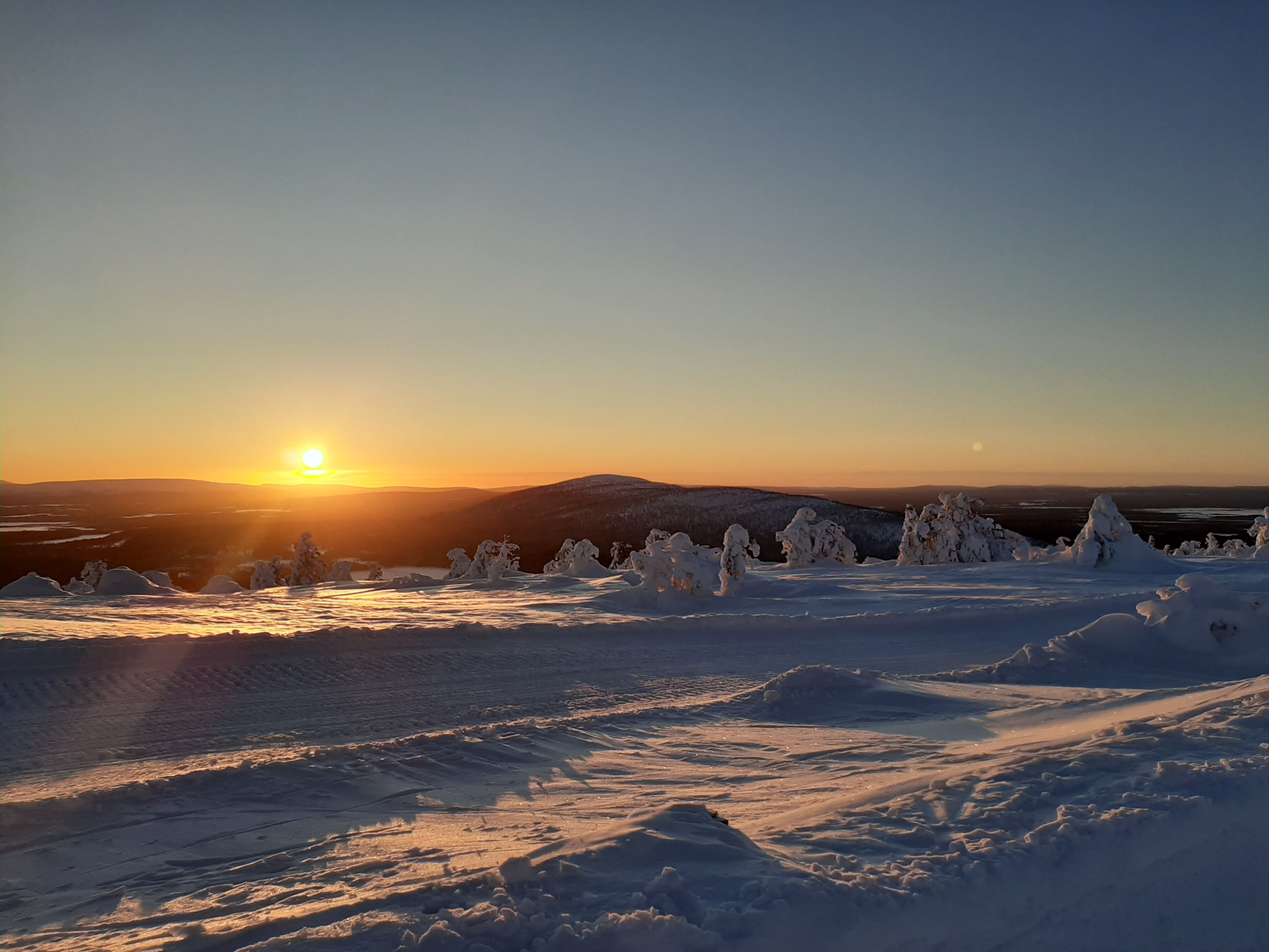 This route is moderately challenging, requiring a good basic fitness level, but rewards you with unforgettable scenery and a genuine taste of Lapland’s magic. We will go slowly up and enjoy hot chocolate and sandwitches at the peak. You should take your camera or phone with you, because the scenery is just breathtaking.